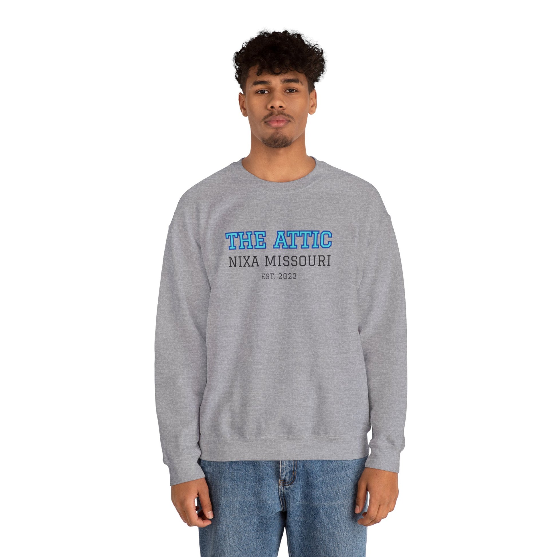 Crewneck Sweatshirt — The Attic Nixa Missouri Est. 2023 College-Style Pullover